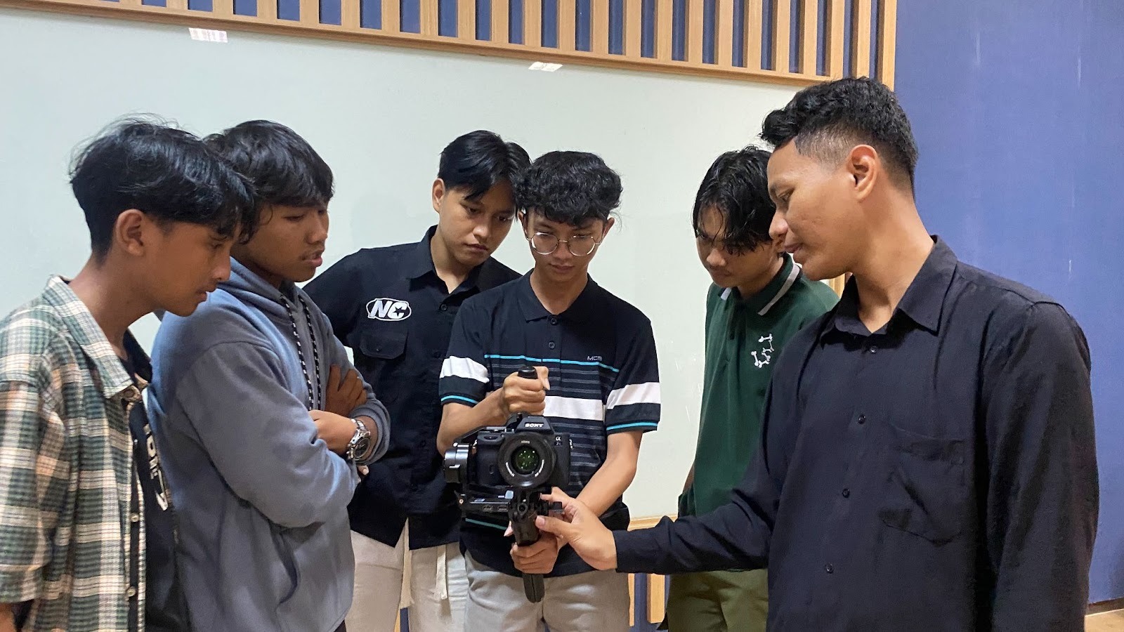 Tidak hanya berhenti di teori, mahasiswa juga mengikuti sesi praktik langsung menggunakan kamera dan stabilizer. Mereka belajar menjaga kestabilan gambar dan mencoba teknik pengambilan video yang lebih profesional. Suasana kelas berjalan interaktif karena peserta diperbolehkan mengeksplorasi dan bertanya langsung saat mencoba alat yang digunakan.